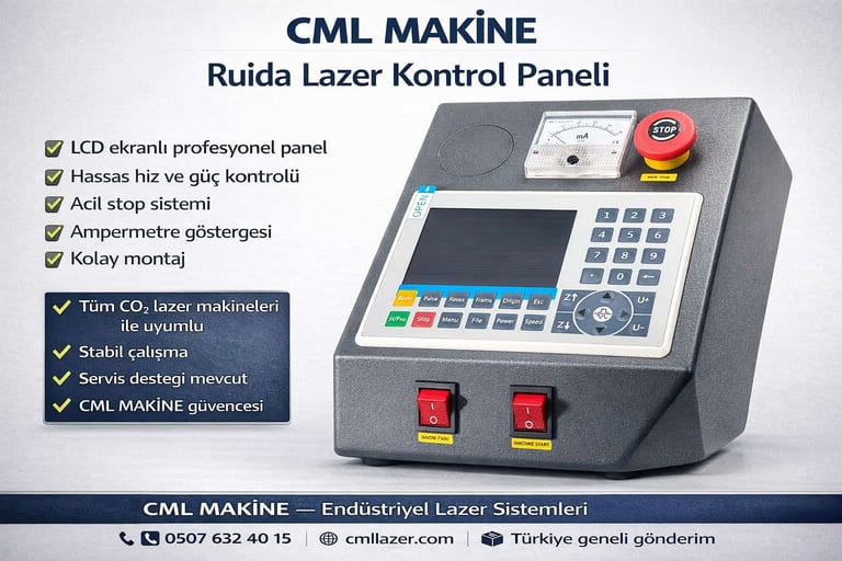 Profesyonel bir Ankara lazer kesim makinesi sisteminde kullanılan kontrol paneli ve elektronik aksam doğrudan kesim kalitesini etkiler. Bu noktada dünyada en çok tercih edilen kontrol sistemlerinden biri olan Ruida RDC6445G panel ve anakart sistemi; stabil çalışma, hassas kazıma ve net kesim performansı sağlar.